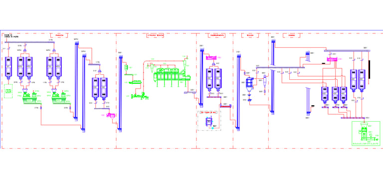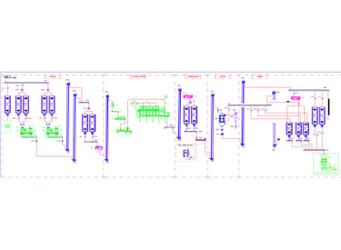 Fluxograma e Lista de todos equipamentos, com todas as informações para manutenção preventiva e preditiva. Identificação de gargalos e alterações para ganho de produção